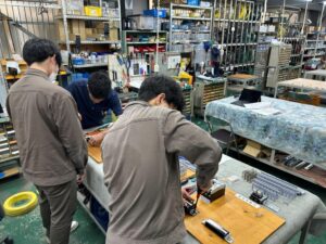 1日目の午後と2日目の午前は、製造業務として工場にて盤の組立体験を実施しました。