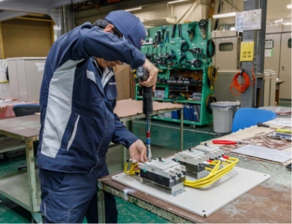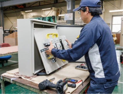 設計技術課からの図面を基に盤の製造・検査を行います。 製造課は社内だけではなく、現場に出張して改造業務なども行います。 品質保証課は検査業務や品質管理を行っており、幅広い知識が求められます。